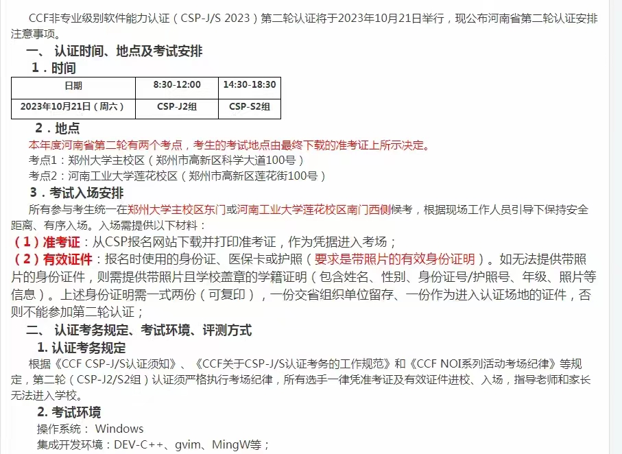官网 第一轮参赛认证要求:CSP-J/S 2023第一轮认证河南省考前重要提示